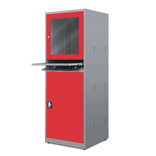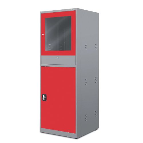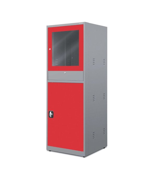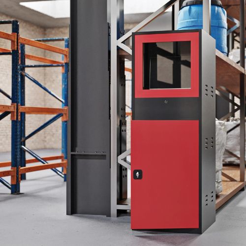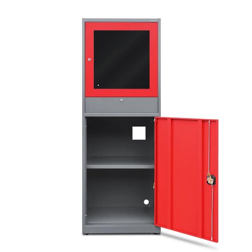 Dulapul-stație pentru calculator Steve de la Jan Nowak în culorile antracit și roșu va facilita procesele de producție și depozitare din cadrul companiei tale, prin plasarea calculatorului cât mai aproape de angajați și fără grija deteriorării echipamentelor.