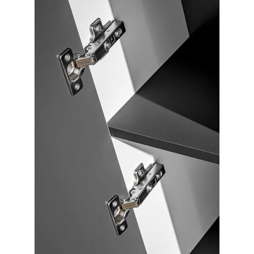 Compartimentul încăpător cu mâner ergonomic la ușă, rafturi interioare și închidere silențioasă asigură depozitarea confortabilă a produselor cosmetice, a celor de curățenie și a accesoriilor de baie.