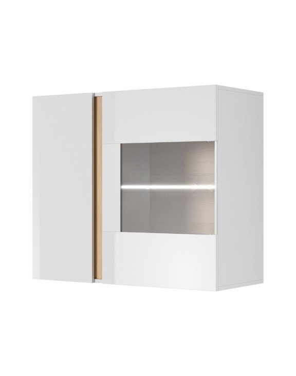 Dulap suspendat cu geam Arco, alb/stejar grandson