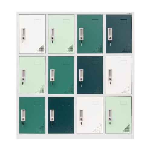 Ușile sale colorate, în nuanțe diverse de verde, îi vor binedispune pe micii utilizatori, în timp ce compartimentele individuale de depozitare îi vor încuraja să fie independenți și ordonați.