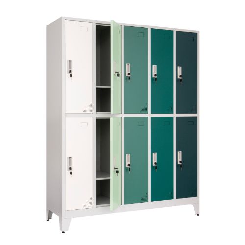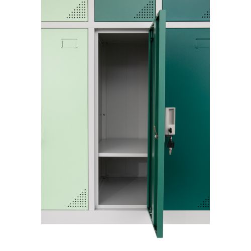Dulapul de vestiar Oxford Green de la Storfy este soluția de depozitare ideală pentru vestiarele din școli, after-school-uri sau centre de zi, dar poate fi utilizat și în birouri, gym-uri, piscine etc.