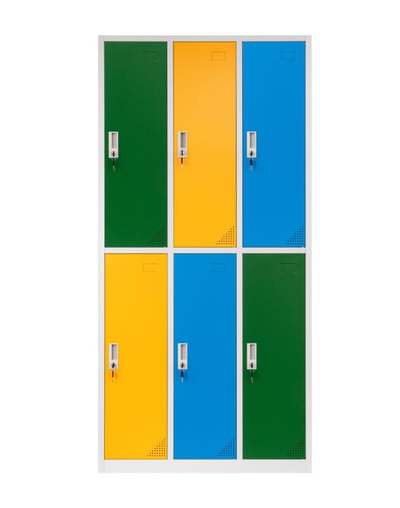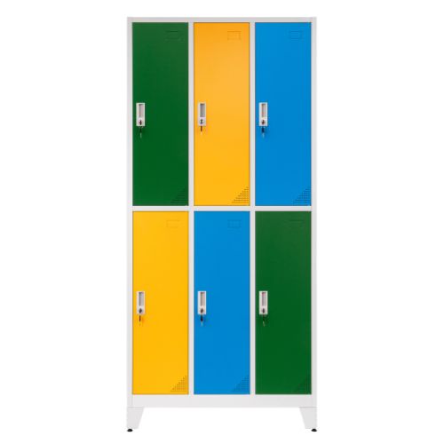 Dulapul este echipat cu șase compartimente individuale, fiecare cu o încuietoare cu came proprie și două chei incluse, asigurând confidențialitatea și protecția conținutului.