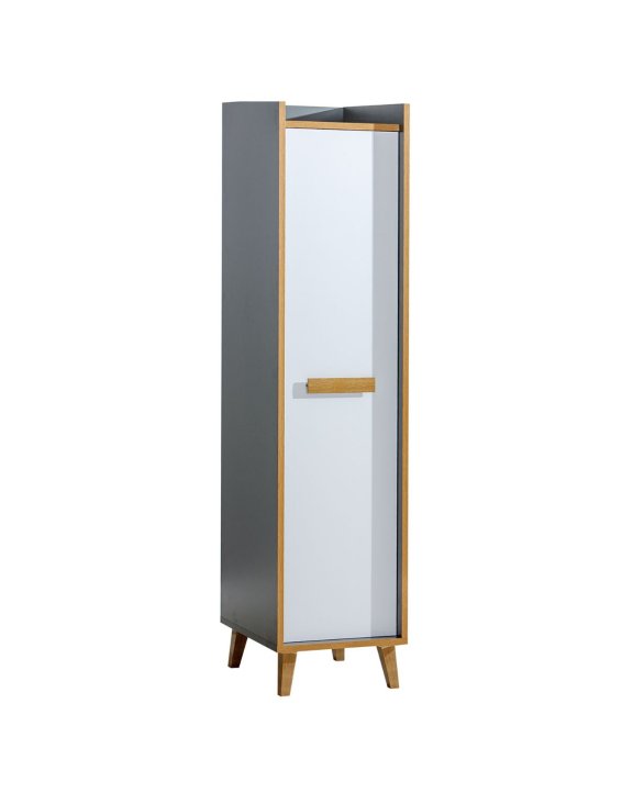 Dulapul se încadrează în stilul scandinav atât de popular printre iubitorii de design interior, grație aspectului minimalist și a picioarelor din lemn înclinate.