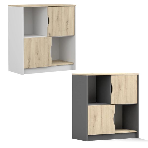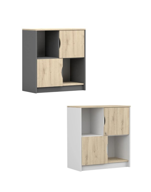 Dotată cu două compartimente spațioase și două rafturi deschise, aceasta îți permite să depozitezi și să expui diverse obiecte, precum gadgeturi sau jucării.