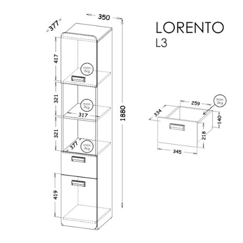 | Etajeră îngustă pentru camera copiilor Lorento L3, alb/stejar nash (45 cm) | 588,34 RON |