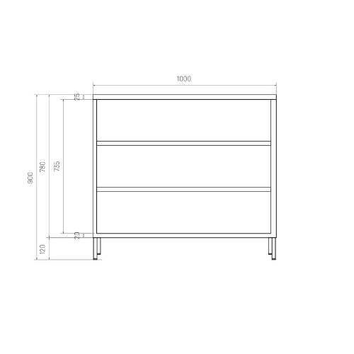 Picioarele etajerei sunt reglabile într-un interval de 3 cm. Prin urmare, aceasta va fi foarte stabilă, perfect nivelată pe suprafața pe care este așezată.