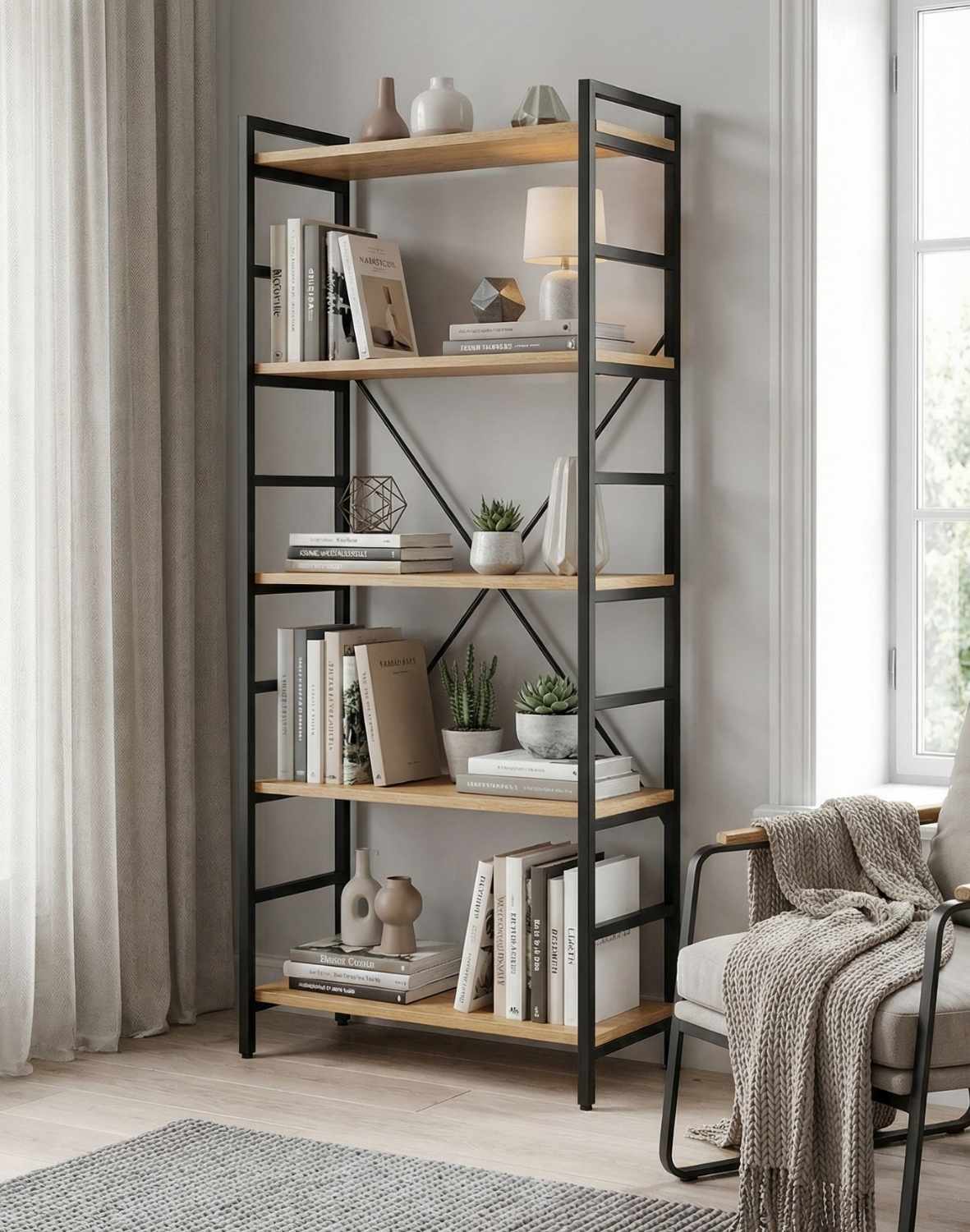 Nu este doar funcțională grație celor 5 rafturi încăpătoare, ci are și un aspect modern. Cu siguranță atrage atenția prin designul său.