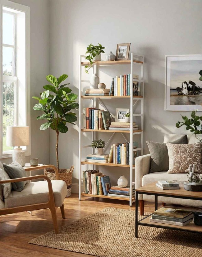 Cadrul alb îi conferă o greutate redusă și face ca etajera să se potrivească bine cu diferite modele de interior. Culoarea poate reprezenta un contrast excelent cu alte obiecte de mobilier, făcând în același timp ca aspectul general să fie modern și elegant.