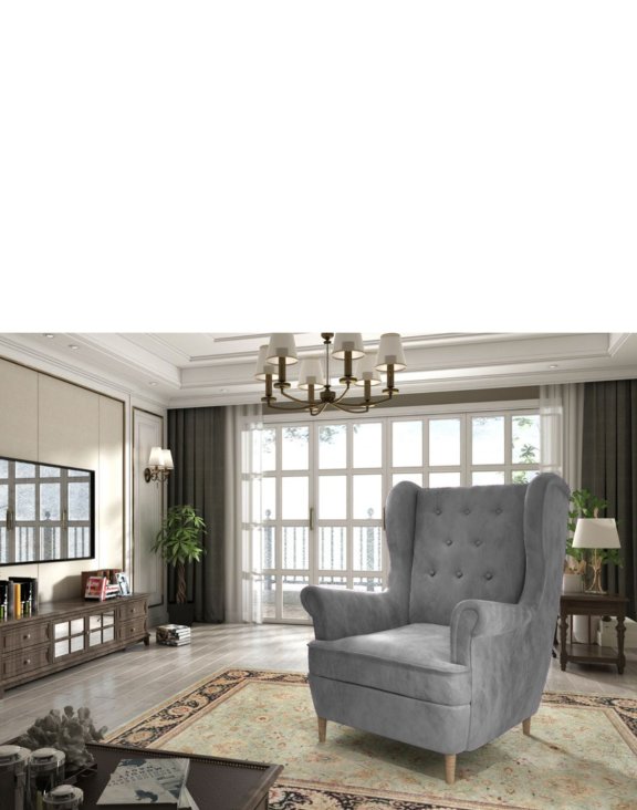 Fotoliul Aros 1F cu expediere rapidă de la Eltap este o piesă de mobilier plină de farmec, ornată cu nasturi pe spătarul cu „urechi”.