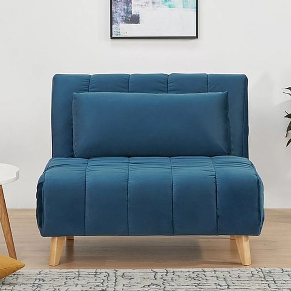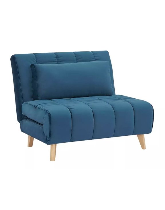 Fotoliul extensibil Billy, tapițat cu o țesătură catifelată de culoare albastră, de la Signal, este o piesă de mobilier multifuncțională care îi conferă spațiului interior o atmosferă relaxată și primitoare.