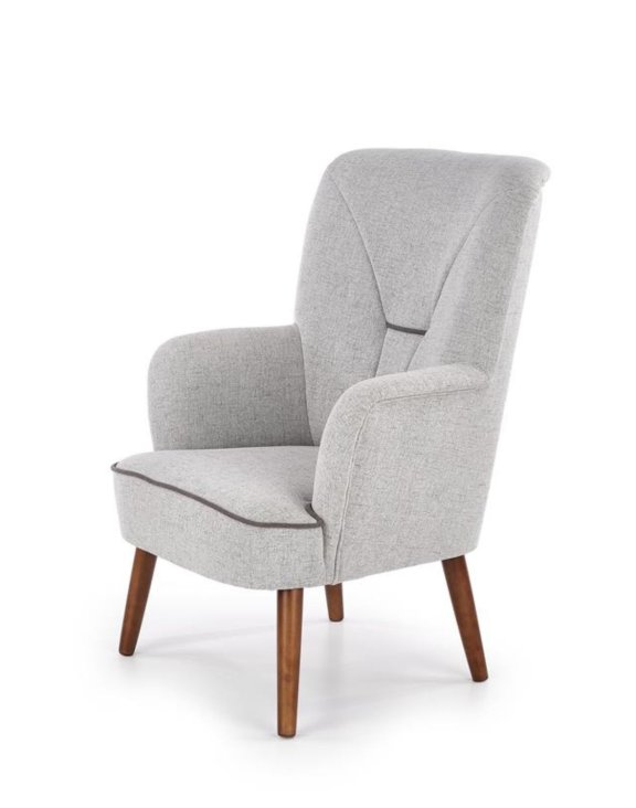 Țesătura de culoare gri îi conferă fotoliului un efect de contrast subtil și îi accentuează forma unică.