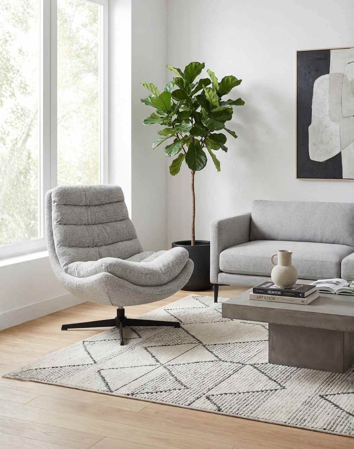 Fotoliul pivotant Calvio, de culoare gri, de la Avida Design, a fost conceput cu gândul la cerințele moderne, împletind funcționalitatea inteligentă cu o estetică atractivă.