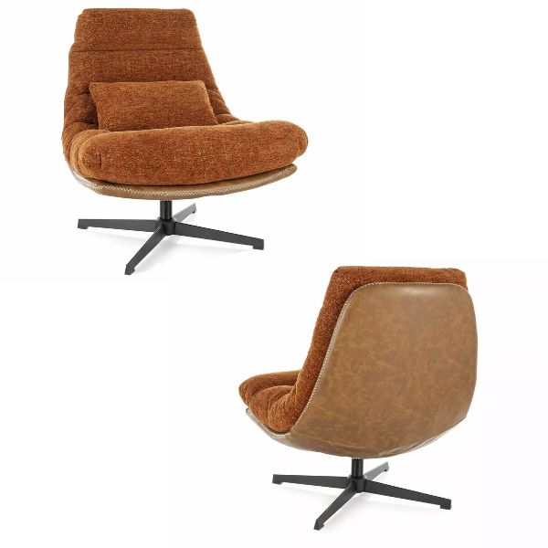 Acesta este tapițat cu o țesătură fină Raven 44 în scorțișoară (roșcat) și finisat pe spătar cu piele sintetică într-o nuanță armonioasă 233, conferindu-i încăperii un accent de culoare și personalitate.