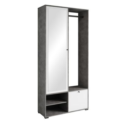 Garderoba de hol Dino matera/alb de la Bratex este o piesă de mobilier elegantă, modernă și extrem de funcțională, ideală pentru hol, studio sau hotel.