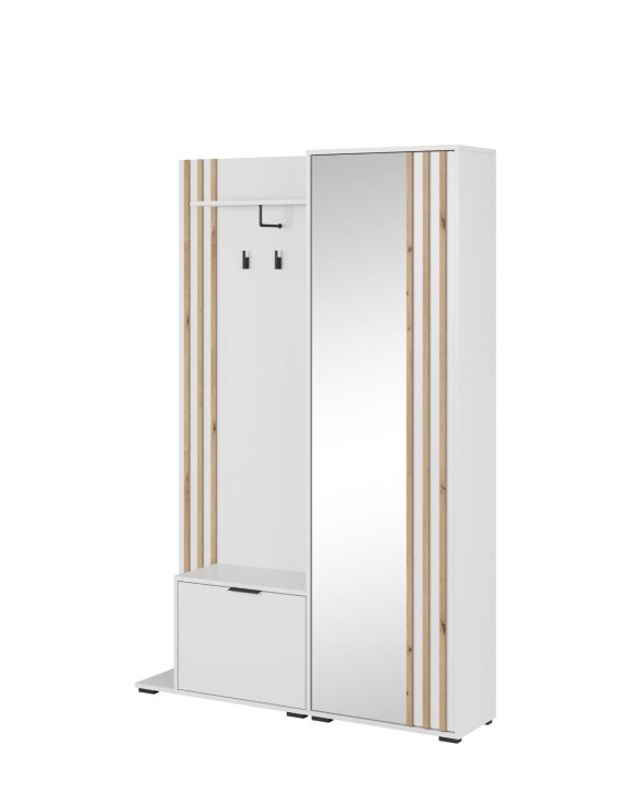 Aceasta este dotată cu un dulap cu rafturi interioare și o bară pentru umerașe, un compartiment pentru pantofi care are rol și de banchetă, cârlige pentru haine, precum și cu un raft exterior, oferindu-ți un spațiu generos de depozitare.