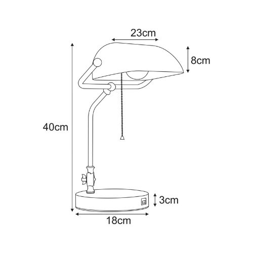 Lampa de birou este echipată cu un lanț tradițional pentru aprinderea și stingerea luminii, un detaliu pe care iubitorii de design atemporal îl vor aprecia cu siguranță.