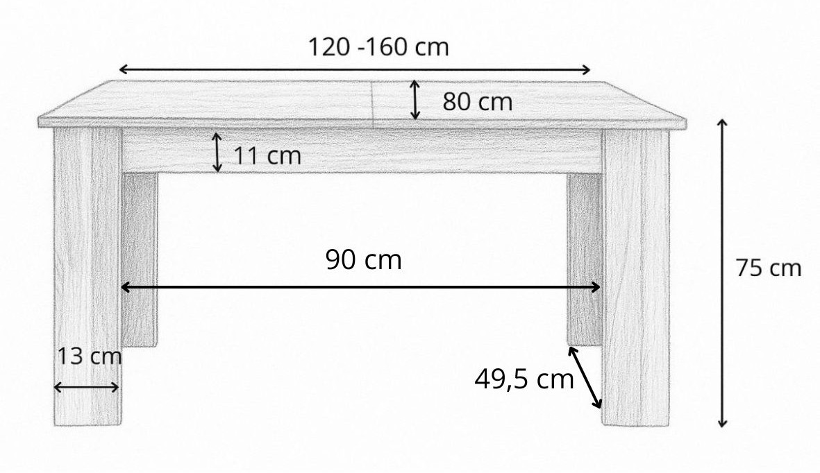 - lungime blat cu inserția suplimentară de blat: 160 cm;