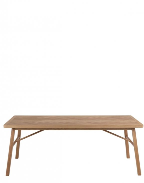 Masa de dining Galway de la Actona impresionează prin blatul său ornat cu un model deosebit „herringbone”.