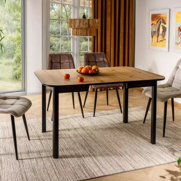 Masa extensibilă Dante II stejar artizanal și negru de la Signal este o alegere excelentă pentru cei care apreciază funcționalitatea, estetica și spațiul aerisit.