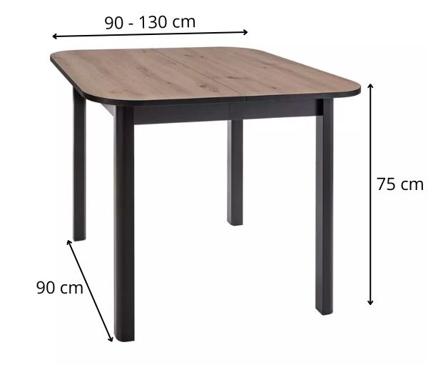 Este o opțiune versatilă, putând fi utilizată în două moduri, ca masă compactă de 90×90 cm pentru uz zilnic sau în versiunea extinsă, cu lungimea de 130 cm, la ocazii speciale.