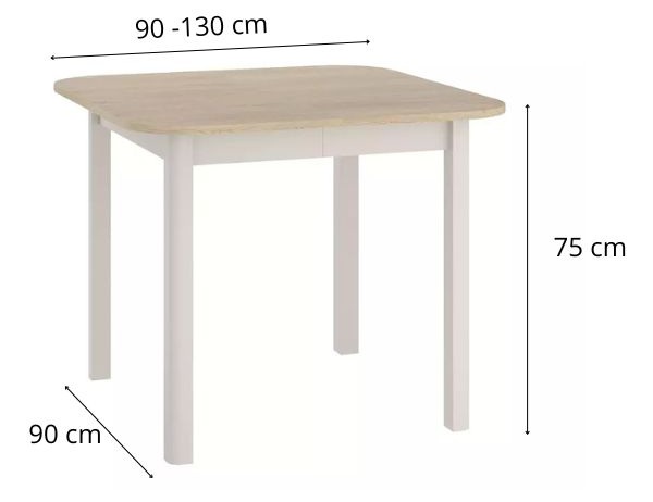 Este o opțiune versatilă, putând fi utilizată în două moduri, ca masă compactă de 90×90 cm pentru uz zilnic sau în versiunea extinsă, cu lungimea de 130 cm, la ocazii speciale.