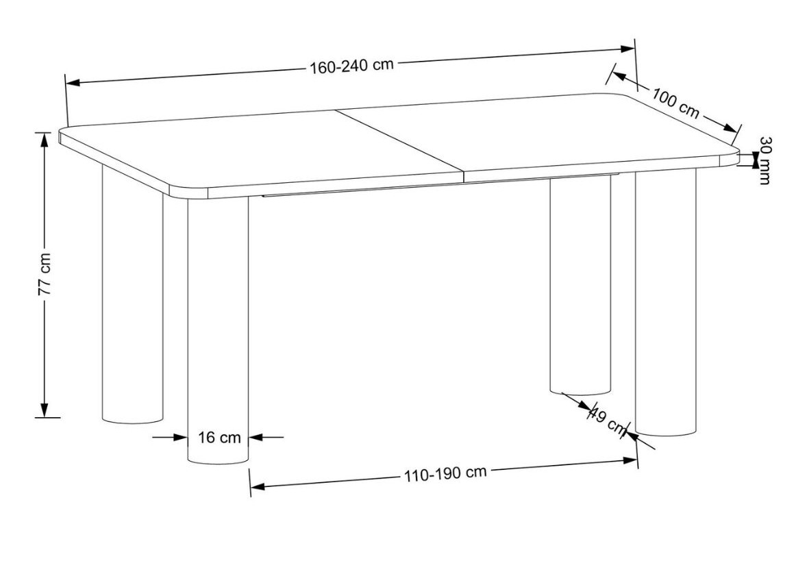 Datorită funcției sale de extindere, lungimea mesei poate fi mărită cu ușurință de la 160 cm la 240 cm, permițându-ți să găzduiești mai mulți oaspeți în timpul reuniunilor de familie sau petrecerilor cu prietenii.