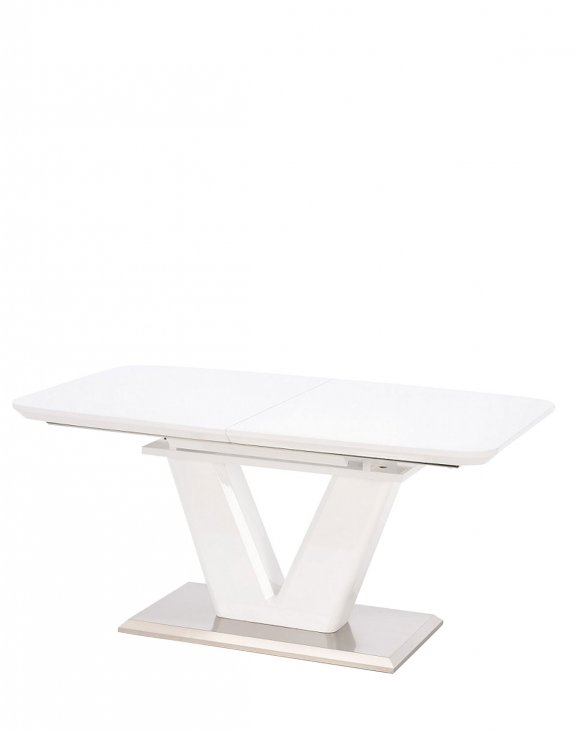 Masa modernă de dining Mistral de la Halmar are o funcție de extindere a blatului până la 220 cm, astfel că poate acomoda 8 persoane.