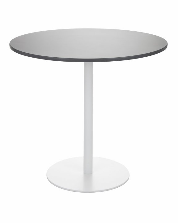 Baza circulară din metal și piciorul central din metal sunt acoperite cu pulbere într-una dintre cele 3 culori disponibile: negru (RAL 9005), alb (RAL 9003) sau gri (RAL 9006).