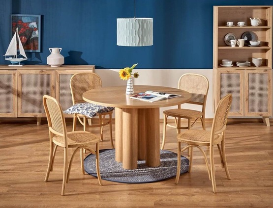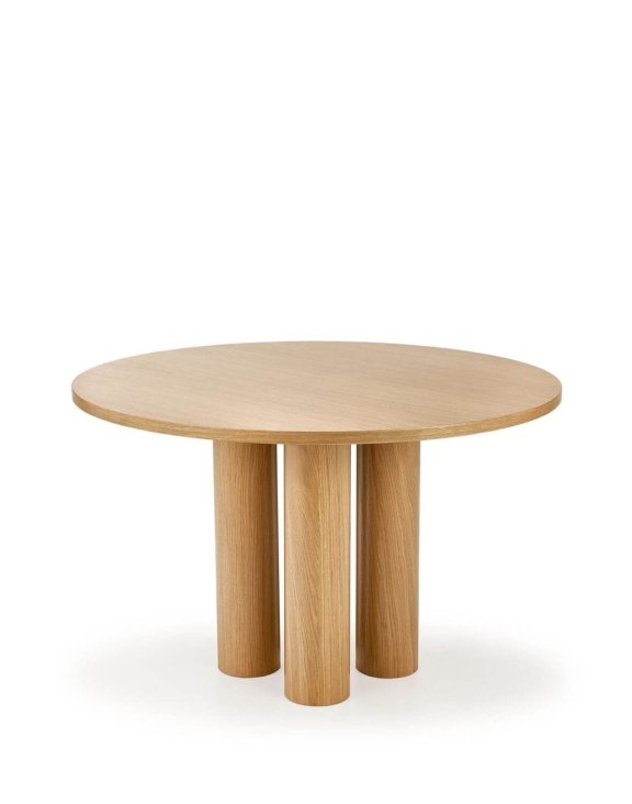 Masa rotundă Elefante (120 cm), în culoarea stejar natural, de la Halmar, este o piesă statement care îmbină perfect designul modern cu durabilitatea și confortul, ideală pentru interioarele sofisticate.