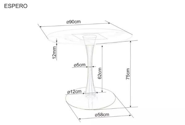 - diametru blat: 90 cm;