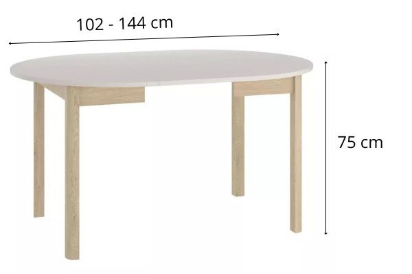 Este o opțiune versatilă, putând fi utilizată în două moduri, ca masă compactă de 102 cm diametru pentru uz zilnic sau în versiunea extinsă, cu lungimea de 144 cm, la ocazii speciale.