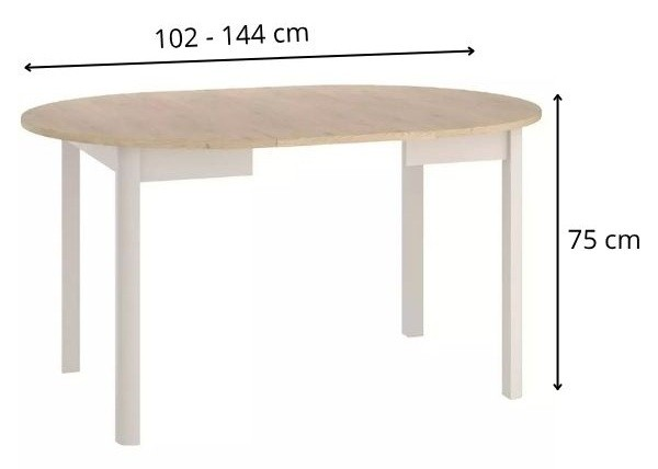 Este o opțiune versatilă, putând fi utilizată în două moduri, ca masă compactă de 102 cm diametru pentru uz zilnic sau în versiunea extinsă, cu lungimea de 144 cm, la ocazii speciale.