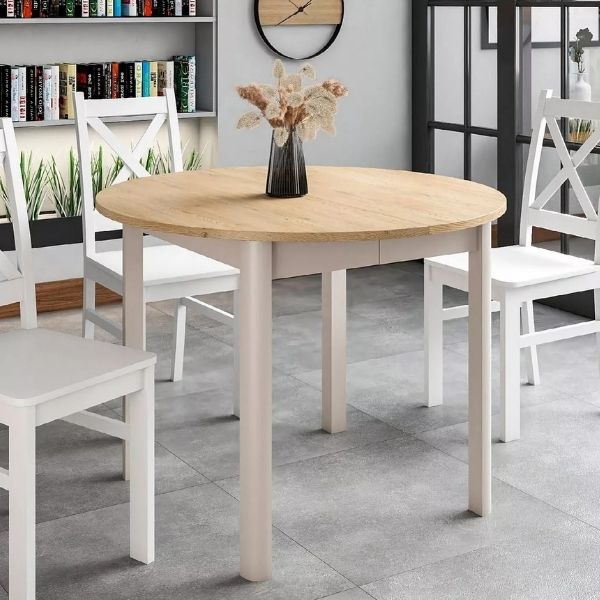 Masa rotundă extensibilă Dante stejar cremona și cașmir de la Signal este o alegere excelentă pentru cei care apreciază funcționalitatea, estetica și spațiul aerisit.