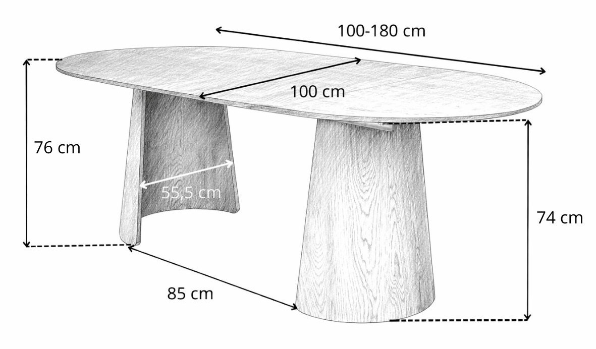 - blat: 100 (restrânsă) - 180 (extinsă) x 100 cm;