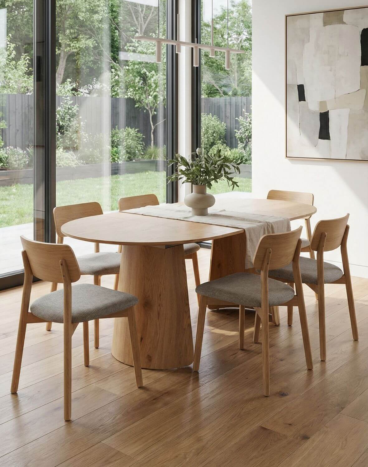 Masa rotundă extensibilă Enzo M Plus de la Avida Design, reprezintă echilibrul perfect între estetică și funcționalitate, fiind o piesă versatilă ce aduce căldura finisajului de stejar sălbatic în inima casei tale.