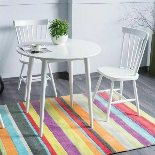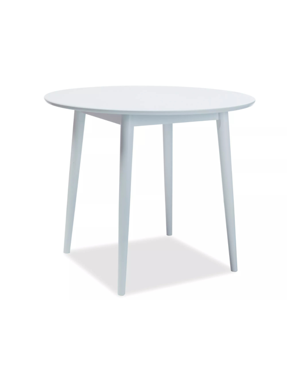 Blatul circular din MDF alb este un accent modern și versatil care, combinat cu picioarele în aceeași nuanță, face ca masa să fie potrivită pentru diverse stiluri de amenajare interioară, de la minimalist la scandinav.