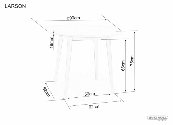 Masa rotundă Larson de la Signal are un blat circular cu diametrul de 90 cm, potrivindu-se perfect în bucătărie, zona de dining sau într-un living open-space.