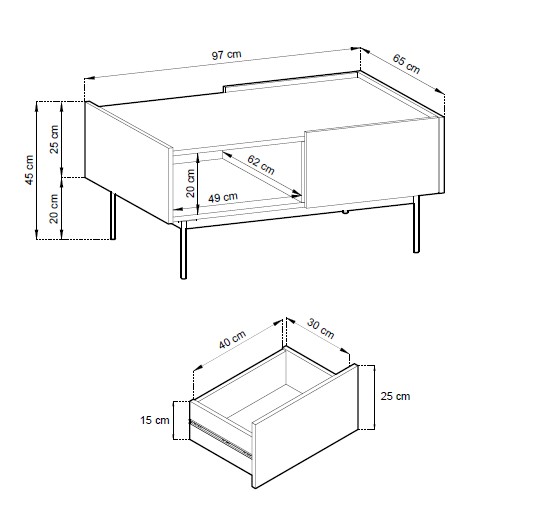 Sertarele încăpătoare și raftul deschis spațios oferă spațiu suficient pentru depozitarea și expunerea revistelor, accesoriilor multimedia și a altor obiecte.