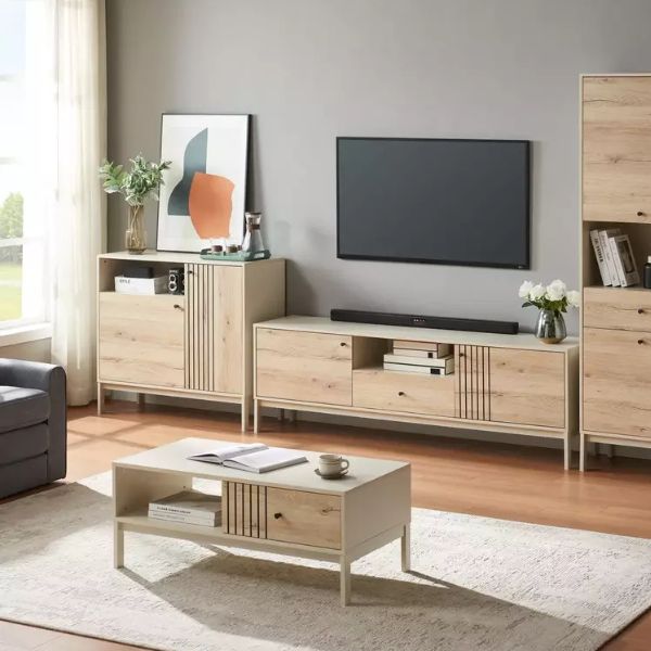 Datorită formei elegante și a nuanțelor armonioase, mai precis albul prăfuit al părților laterale și culoarea stejarului alpin a panoului frontal, această piesă de mobilier se va integra perfect în interioarele scandinave, moderne sau boho.