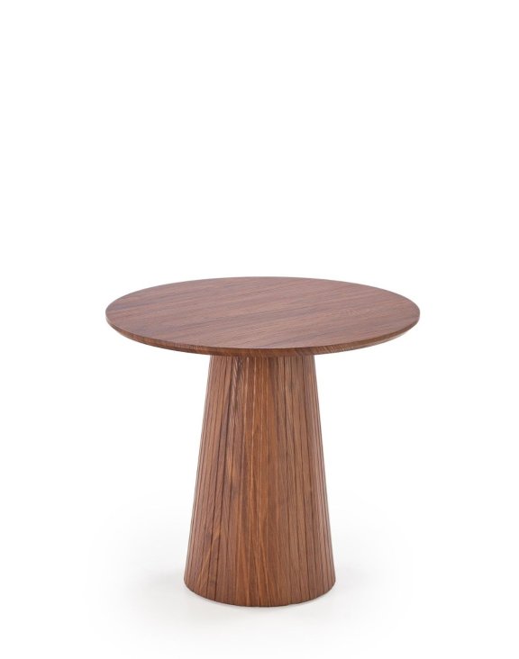 Măsuța de cafea rotundă cu riflaje Gisela S, în culoarea nucului, de la Halmar, redefinește conceptul de accesoriu spectaculos datorită designului său contemporan și finisajului sofisticat.