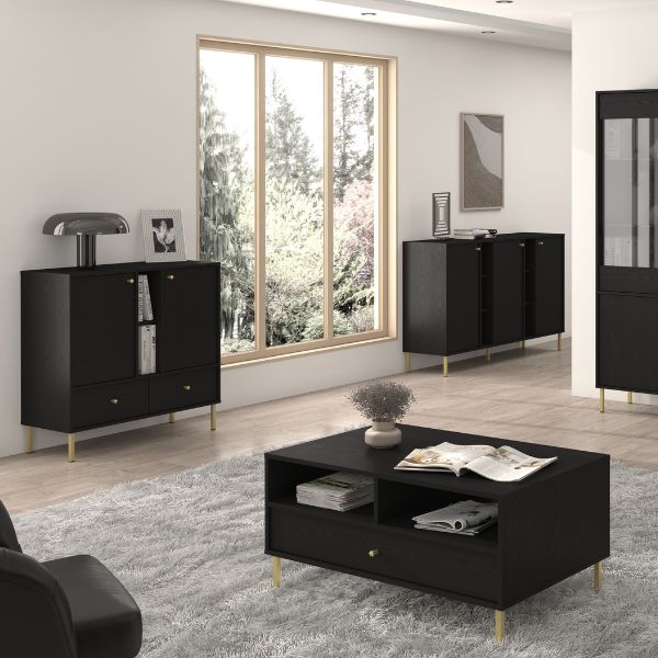Măsuța cu sertar și 2 rafturi deschise Tokyo 2, în culoarea neagră, de la Stolarz Lempert, va aduce un suflu nou în amenajarea casei tale.