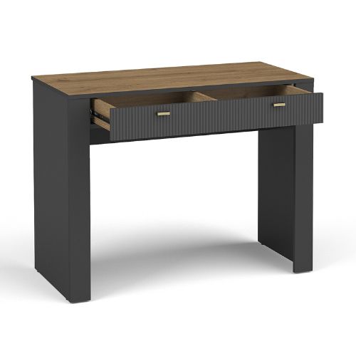 Măsuța este dotată cu două sertare compacte și cu un blat generos, oferindu-ți suficient spațiu de depozitare pentru cosmetice, accesorii etc.