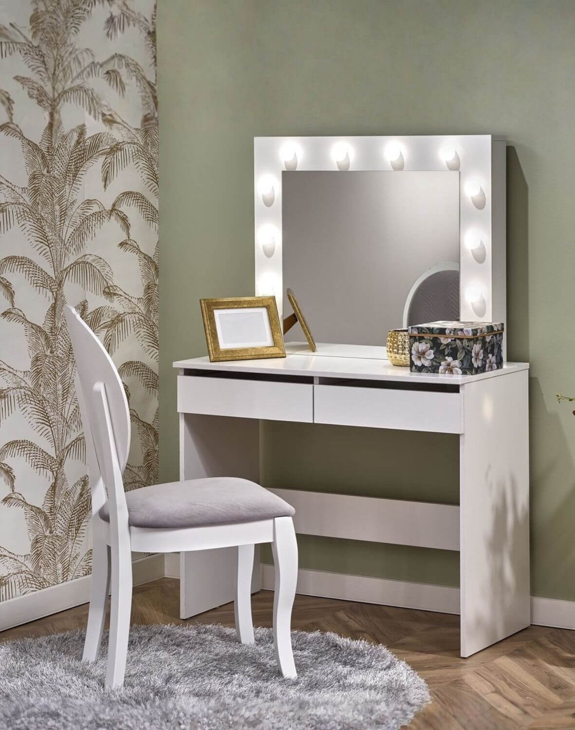 Poate fi amplasată în dormitor, sufragerie sau dressing pentru a crea un colț de înfrumusețare deosebit.