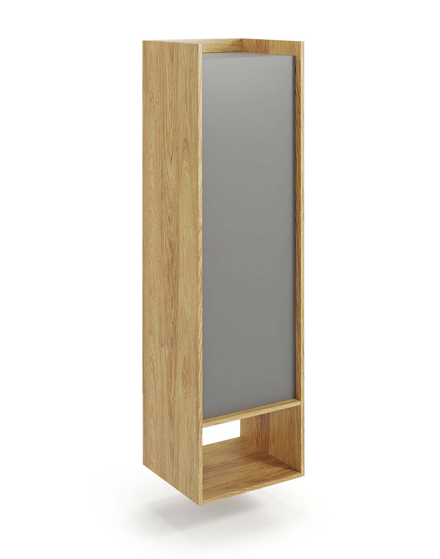Dulapul înalt este fabricat din plăci de mobilier furniruite cu grosimea de 18 mm. Acesta este prevăzut cu un sistem inovator de închidere-deschidere cu push-click.