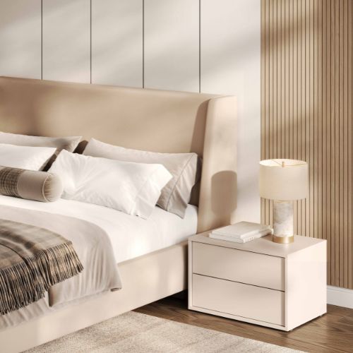 Noptiera cu 2 sertare Bruno cașmir de la MiroMark este o soluție de depozitare care îmbină estetica atractivă și funcționalitatea sporită.