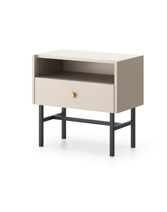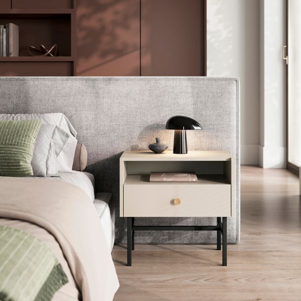 Noptiera Diva cașmir de la Karol combină rafinamentul modern cu funcționalitatea, oferind un spațiu dedicat și organizat pentru obiectele esențiale în timpul nopții.