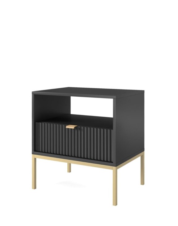 Noptiera Nova neagră de la Piaski este o piesă de mobilier elegantă și funcțională, perfectă pentru dormitoarele moderne.