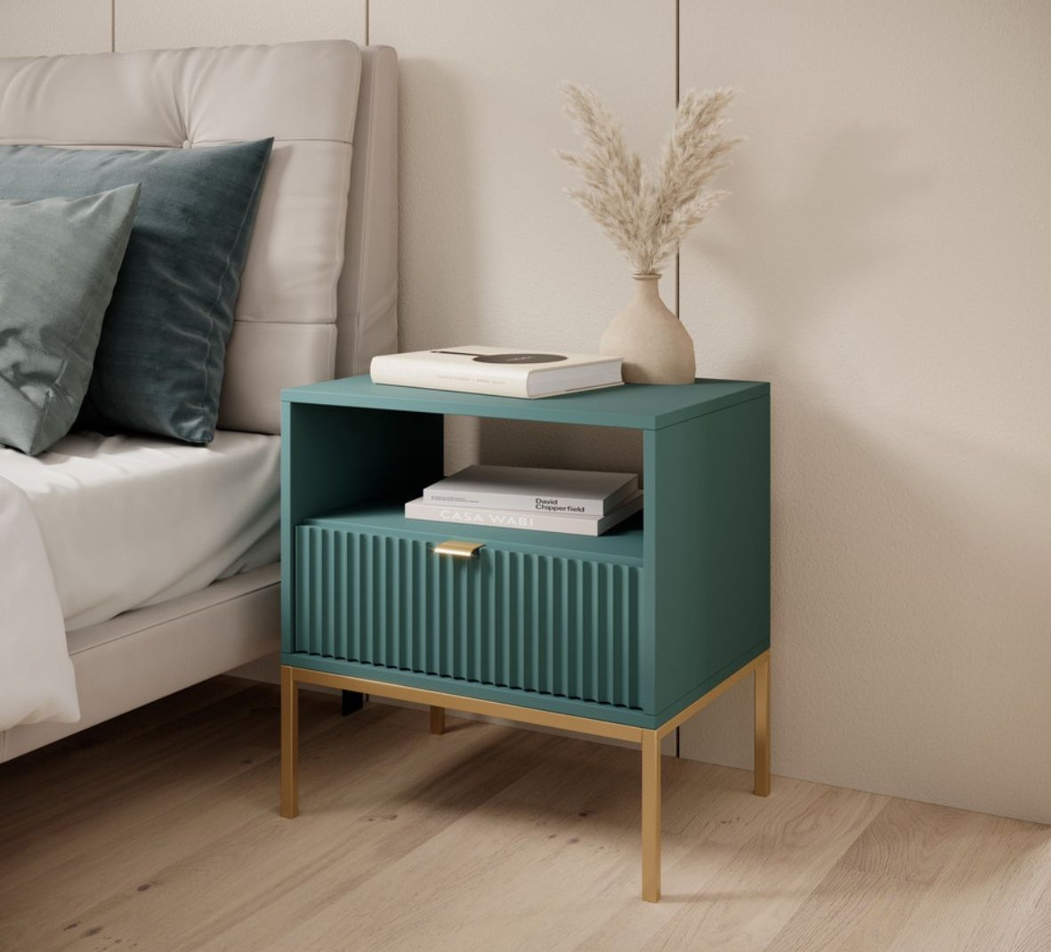 Noptiera Nova verde de la Piaski este o piesă de mobilier elegantă și funcțională, perfectă pentru dormitoarele moderne.
