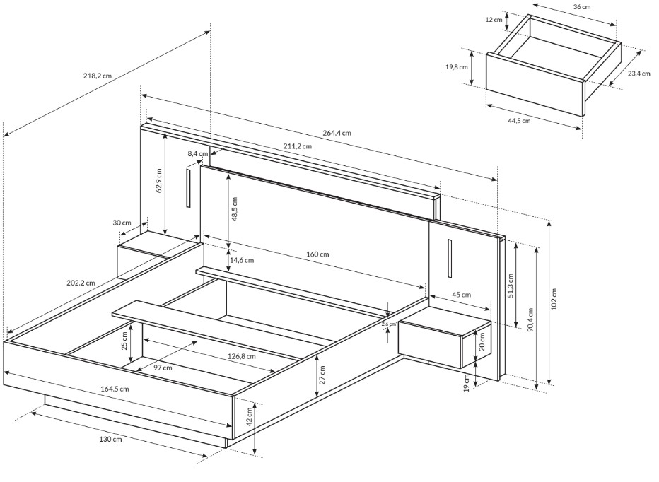 Dispune de un design funcțional, cu uși care ascund rafturi interioare și sertare compacte pe glisiere cu bile, fiind astfel o soluție inteligentă de depozitare.