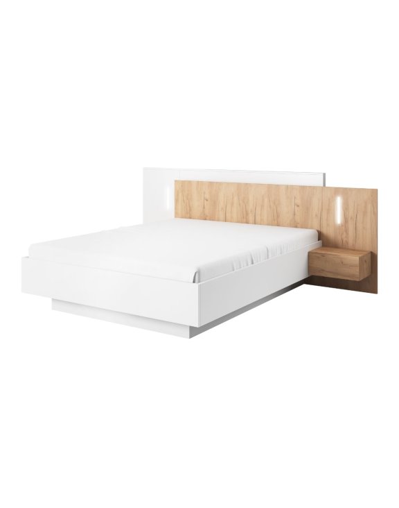 Pat 3D cu noptiere și iluminare LED, alb/stejar artizanal (160×200)